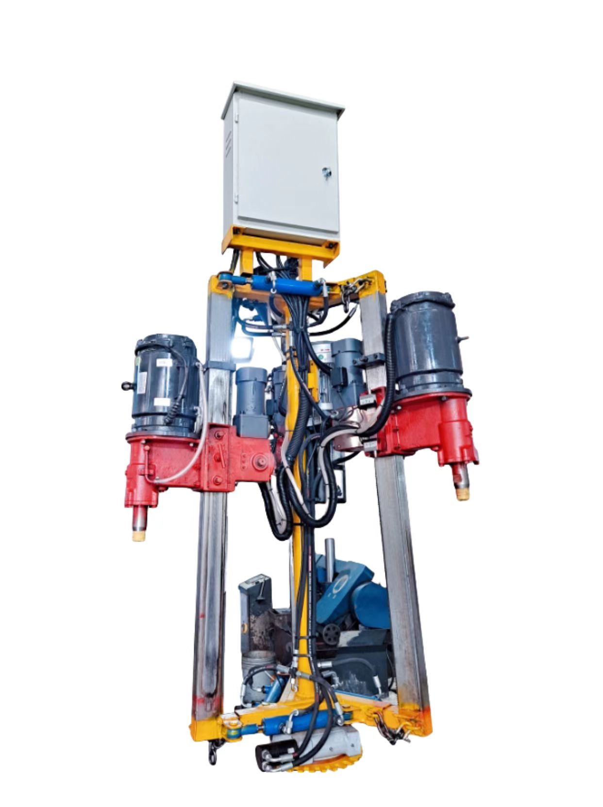 2、优势:基于自动水磨钻研发的一套多机头下井同时工作的设备,从而通过多台自动水磨钻同时下井施工,实现无人下井远程控制桩基打孔工作,即可以解决现场施工安全问题,又能成倍提高施工效率。